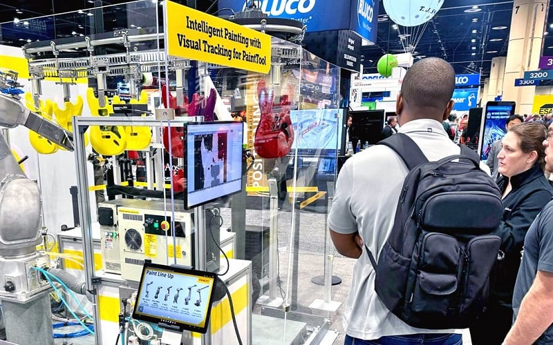 FANUC demonstrates paint programming and inspections with a custom robot setup. Image used courtesy of FANUC America via social media