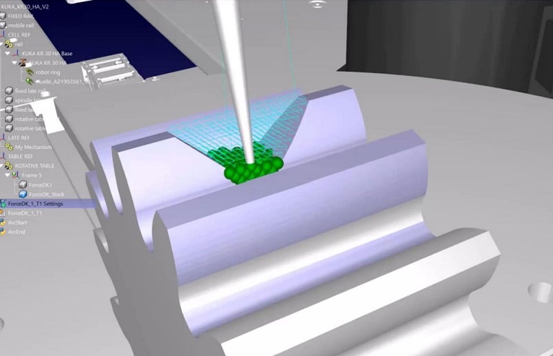 Digital twin and tool path simulation of the damaged gear. Image used courtesy of RoboDK