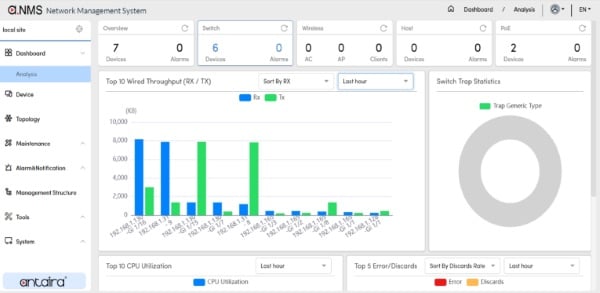 Antaira a.NMS visual dashboard provides vital network statistics at a glance. Image used courtesy of Antaira