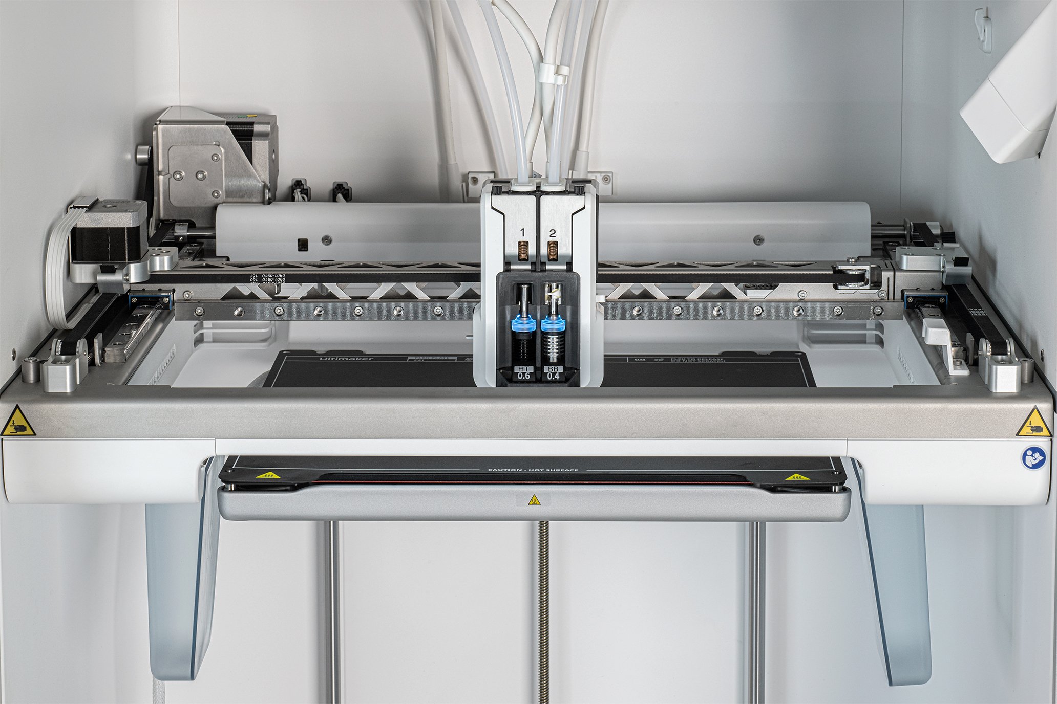 The UltiMaker Factor 4 features an H-bridge gantry and a stiff metal frame for speedy and precise printing. Image used courtesy of UltiMaker