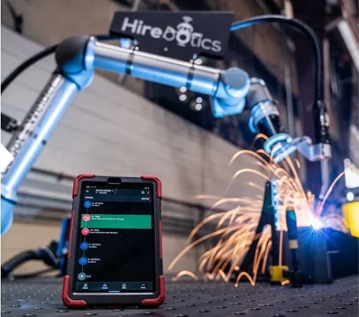 Welding with a collaborative robot solution. Image used courtesy of Hirebotics