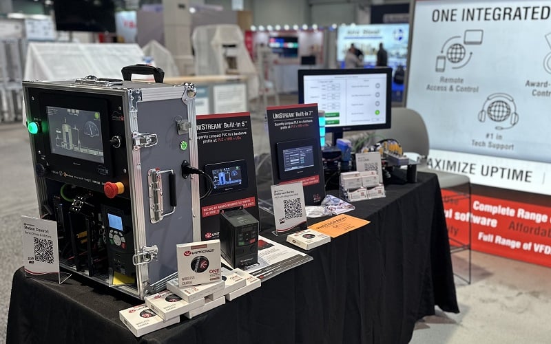 Each of these demo systems stepped through a realistic implementation, combining a PLC, high-resolution touchscreen HMI, and expandable I/O modules, all wrapped into a single platform. The systems showed the various models of the UniStream series, from small, self-contained systems up to those that support larger control systems with thousands of I/O points; a wide variety to meet numerous tasks.