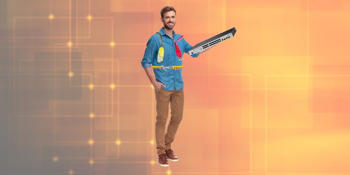 This is a simple one, just rummage through the trash to find whatever happens to look like a piece of network equipment, even if it totally doesn’t work. Plug in a few ripped or broken cables to the wrong ports, maybe mix-and-match a few RJ11 and RJ45 plugs for good measure.