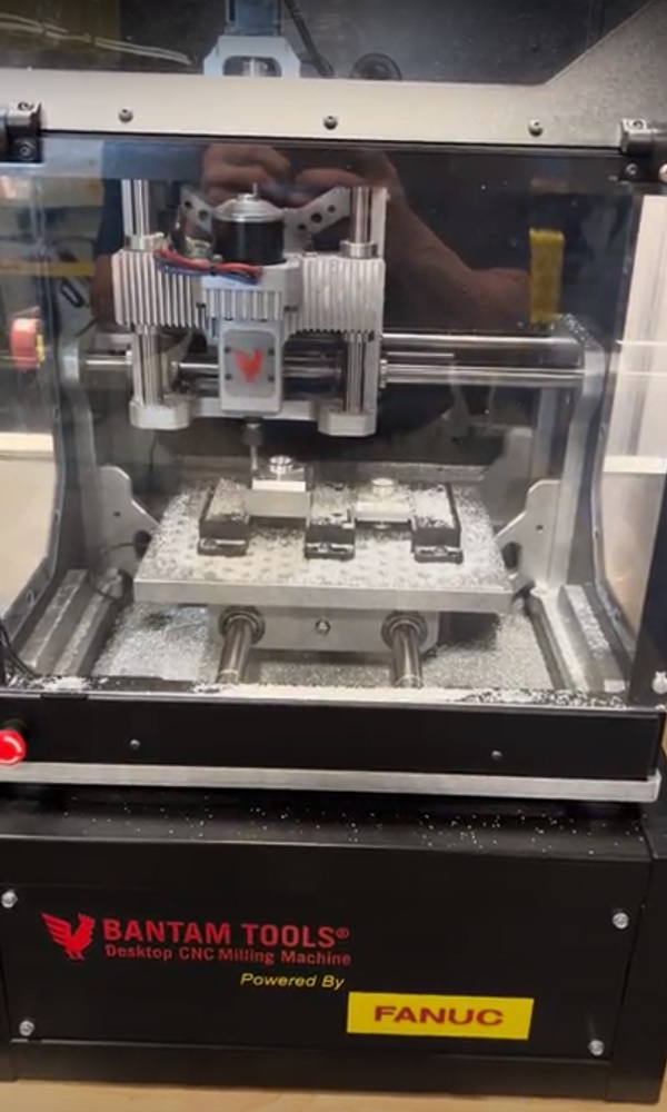 FANUC has partnered with Bantam Tools to design a CNC machine that is run by a FANUC CNC controller, just like those used for large, sophisticated machines. However, by placing the controls on a simpler model, the price becomes affordable for educational institutions to provide students with a firm foundation in hands-on skills before entering the workforce. Great job, FANUC and Bantam Tools!