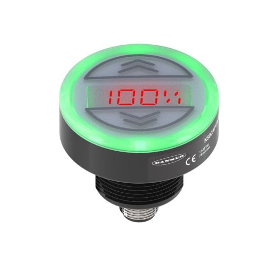 LEDs are provided around the sensor to indicate the machine's status. Light animations can also be used for additional status indication. A 14-segment display is situated on top of the sensor and can be programmed with either Banner's free Pro Editor or over IO-Link. The analog output can be used with speed control or dimming functions without the need for a PLC. The K50 is designed with bin picking applications in mind, as the display can be used for short messages or display countdowns and timers.